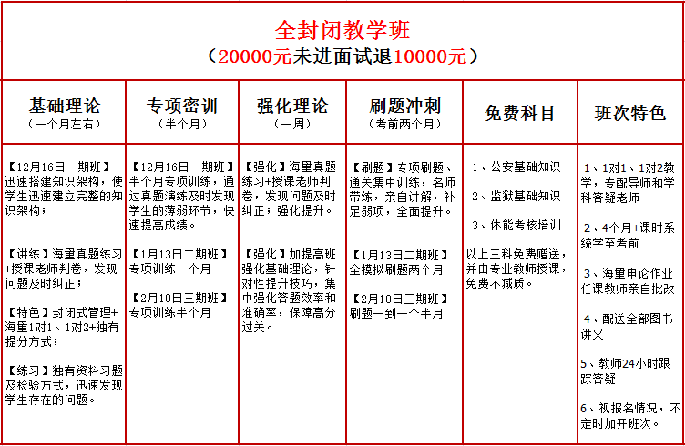 全年班(整年學習),學習3次課。所有教案,卷子,題庫都免費發(fā)放。大概1000元的資料大放送,公安基礎監(jiān)獄基礎免費!